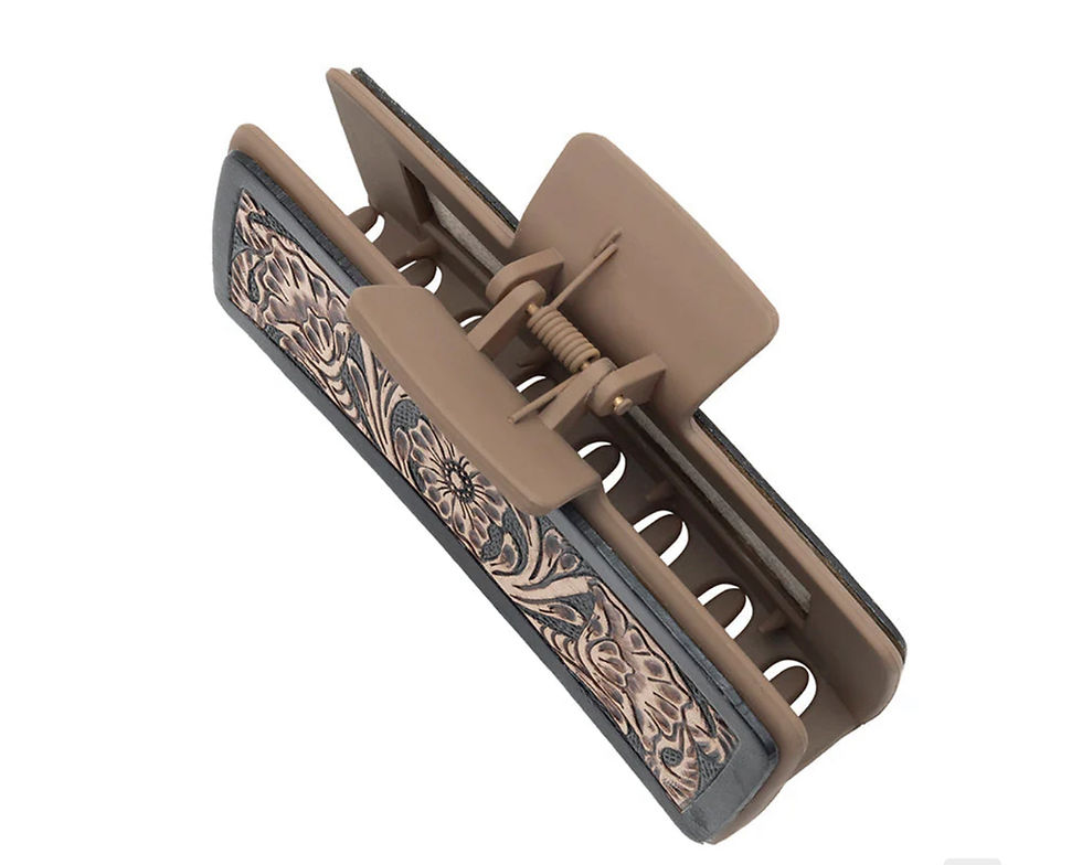 Myra Hair Large Comb Clip In Hand Tooled Leather accented in Black- New