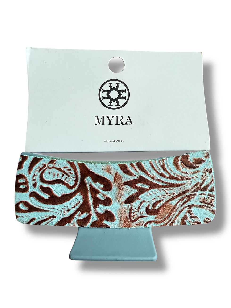 Myra Small Hair Comb Clip with Turquoise Hand Tooled Embossed Leather