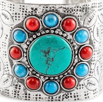 Myra Silver, Turquoise & Red Stone Handcrafted Cuff Bracelet "Gems Tone"