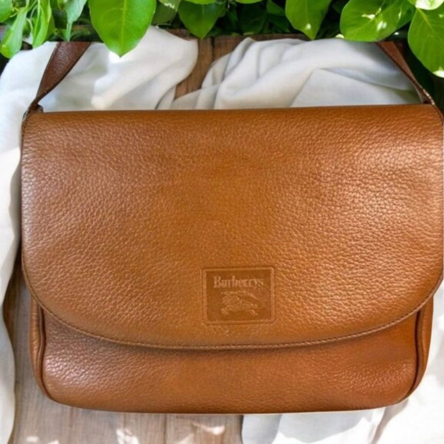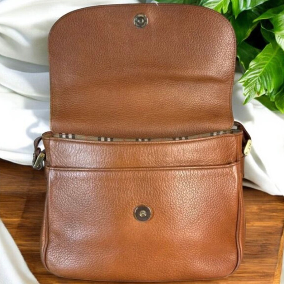 Burberrys Vintage Genuine Leather Flap Crossbody with COA