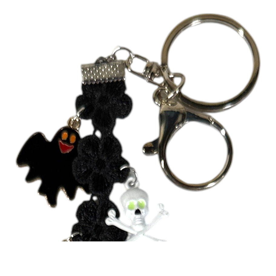 Halloween Charm Handmade Bag Charm Keychain on Black Lace w/ Black & White Charms
