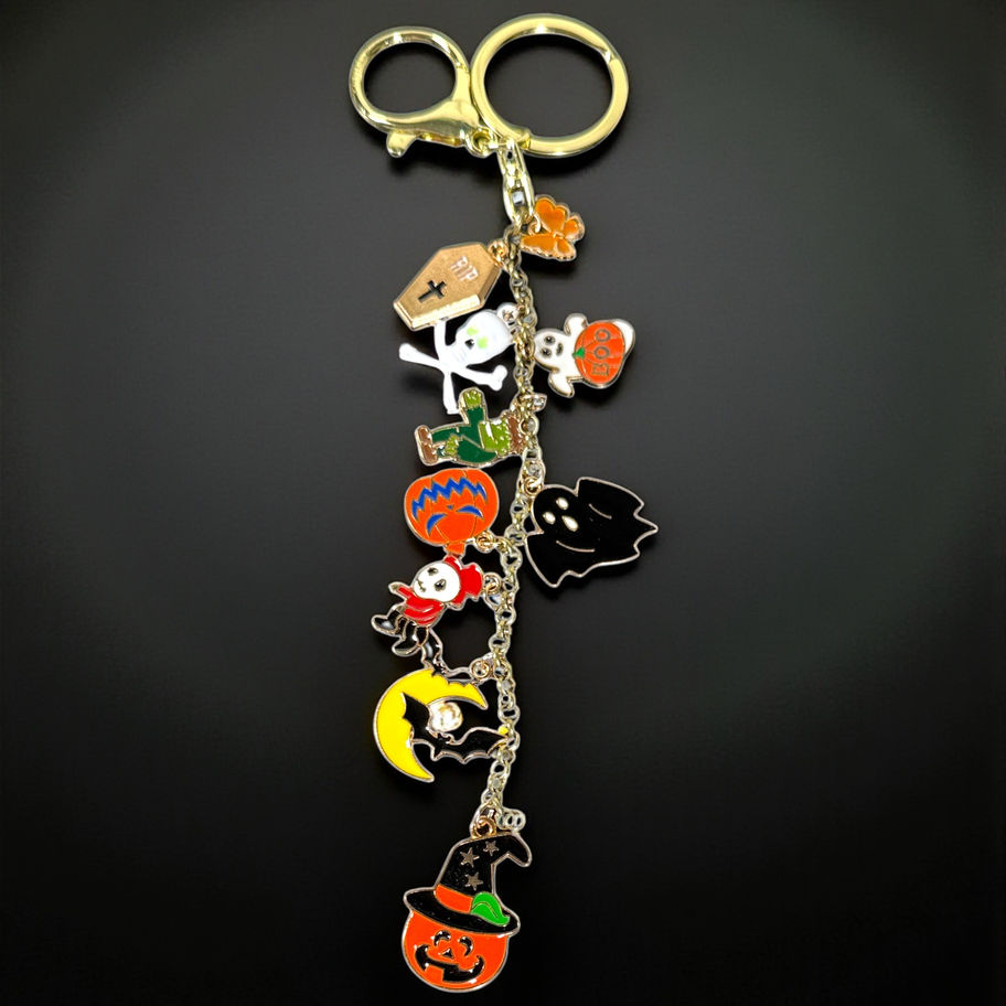 Halloween Charm Handmade Bag Charm Keychain on Gold Tone Chain
