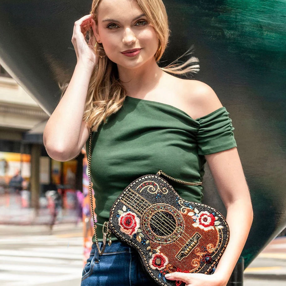 Mary Frances Beaded and Embroidered Guitar "Classical Vibe" Crossbody Handbag