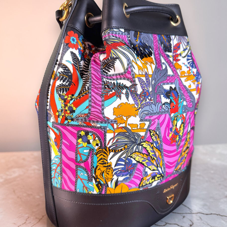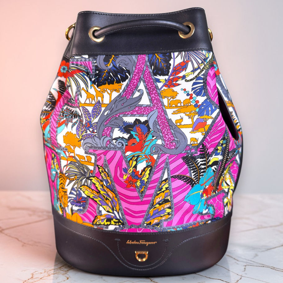 Salvatore Ferragamo Gancini Safari Nylon & Leather Bucket Backpack with BOX