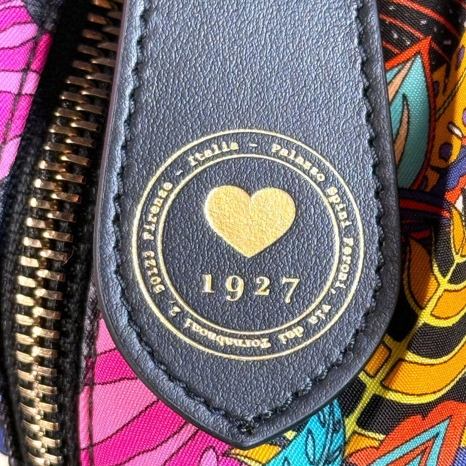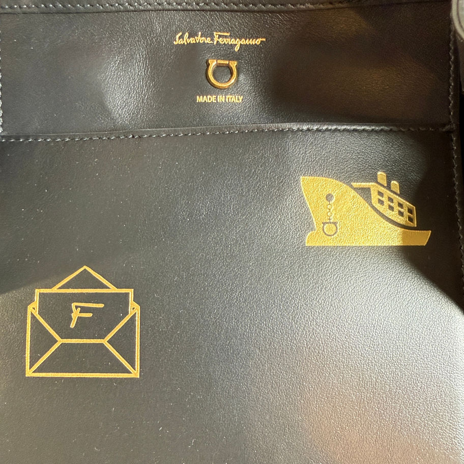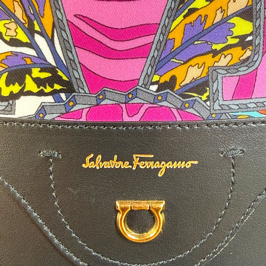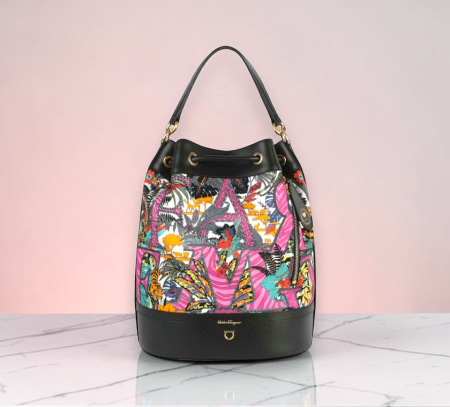 💛 Exterior: Safari print with Ferragamo lettering with 1 zippered pocket