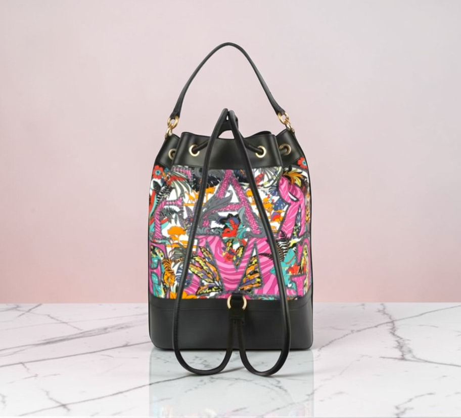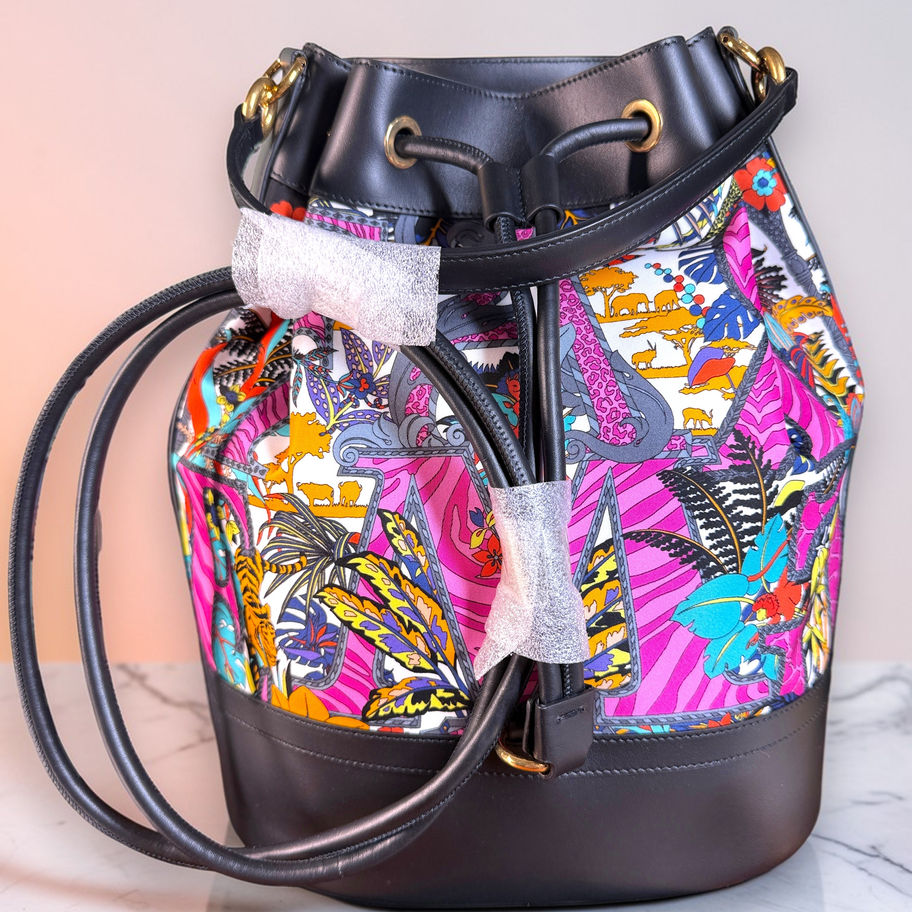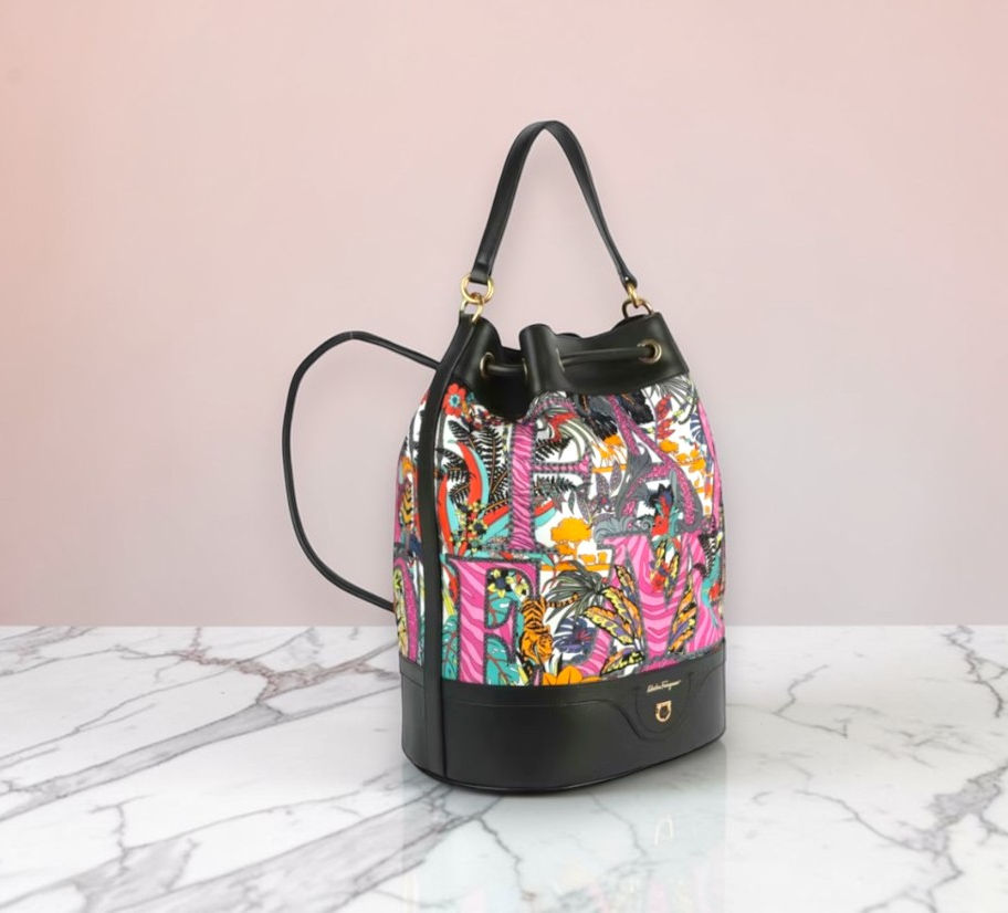 Salvatore Ferragamo Gancini Safari Nylon & Leather Bucket Backpack with BOX NEW
